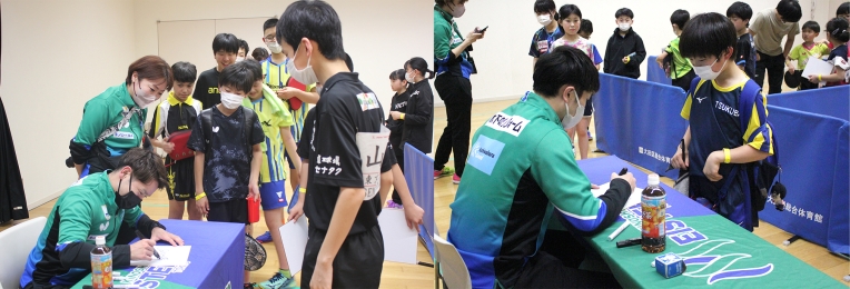 また、試合の合間には木下マイスター東京の選手・監督による、出場選手のみが参加できるサイン会が開催され、皆さまご自身のラケットケースや愛用のノート等にサインを入れてもらっていました。